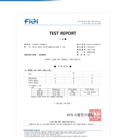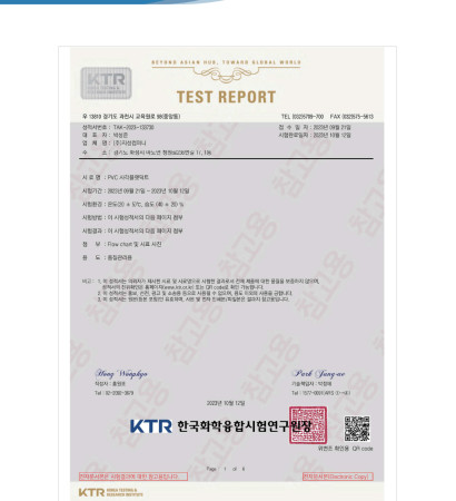 시험성적서 - PVC 사각플랫덕트